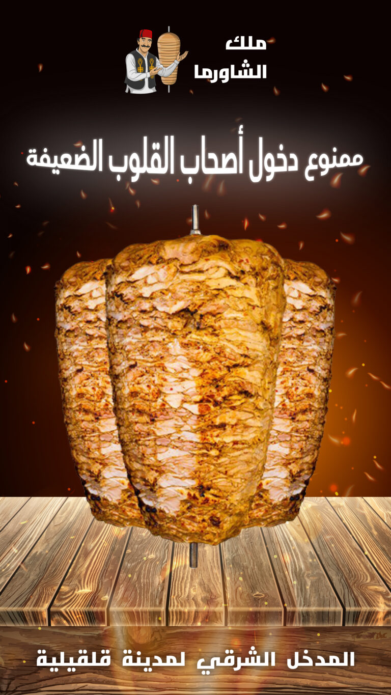 تصميم مواد بصرية وتسويقية لمطعم ملك الشاورما – يشمل صورًا احترافية، بطاقة مطبوعة، ومقاطع فيديو ترويجية.